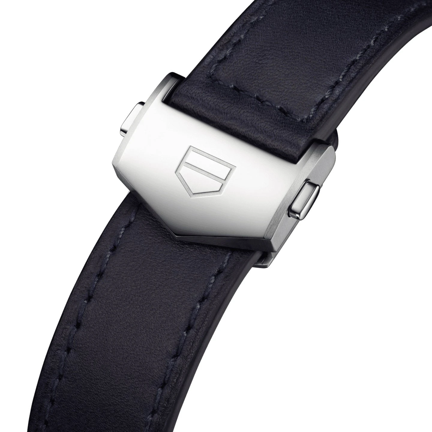The watch is water-resistant up to 100 metres, making it as functional as it is stylish. Complementing the bold design is a blue leather strap, secured by a folding clasp with push-summarys for added comfort and security. A perfect choice for those who appreciate luxury and performance in their timepieces.