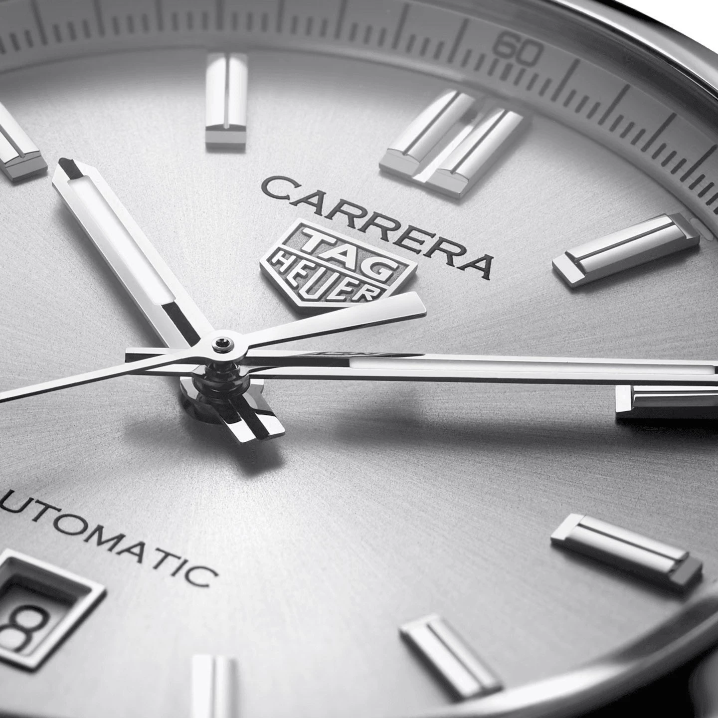The Tag Heuer Carrera Men’s Grey Date Watch is a masterpiece of precision and design. Showcasing a silver sunray brushed dial, enhanced with rhodium-plated hands and markers, this watch blends luxury with functionality. The applied TAG Heuer shield adds a touch of elegance, while the Super-Luminova® filled hands and indexes ensure legibility in all lighting conditions.