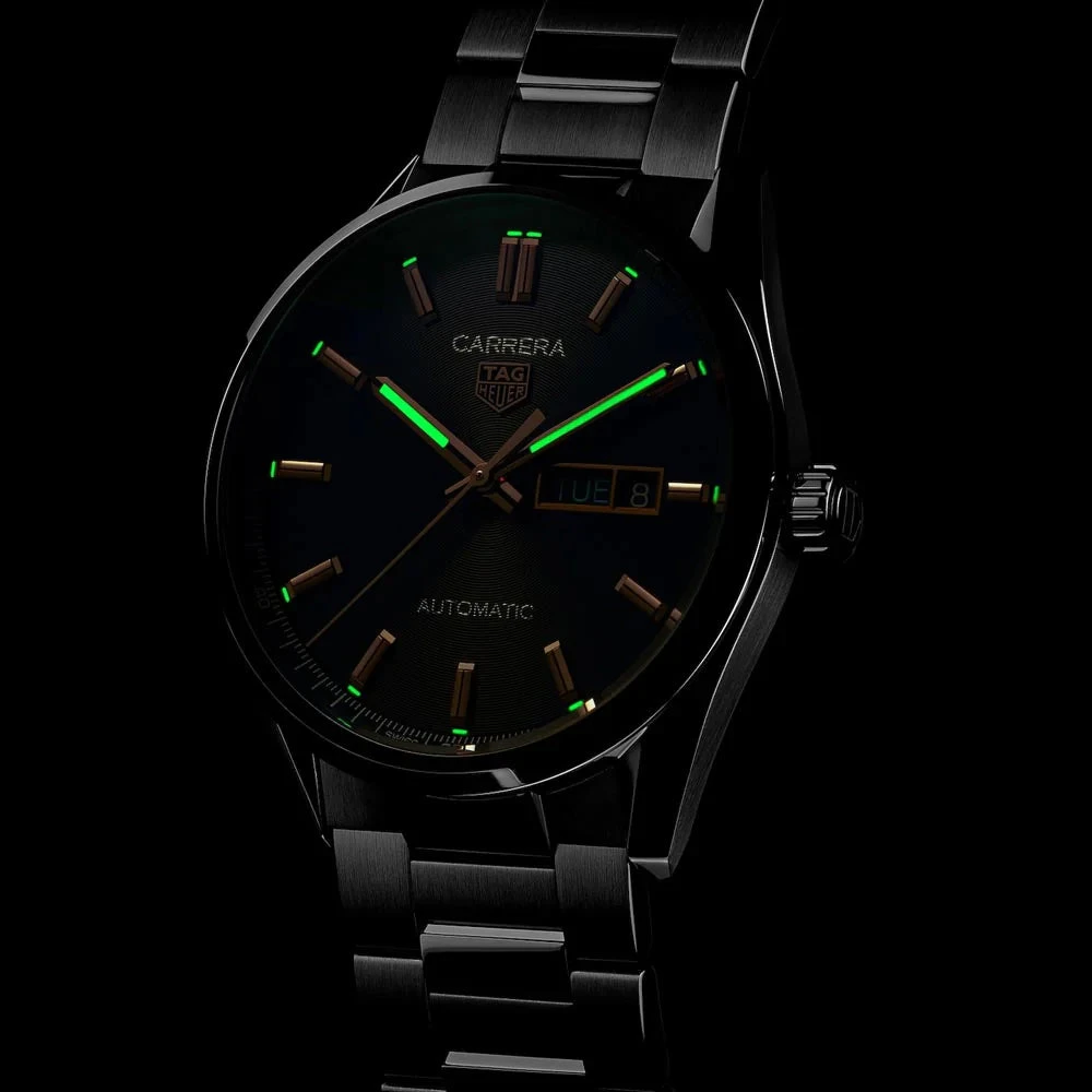 Swiss Made Automatic Watch Day-Date Movement – Tag Heuer Calibre 5 – Power Reserve 38 Hours – 28’800 BPH.