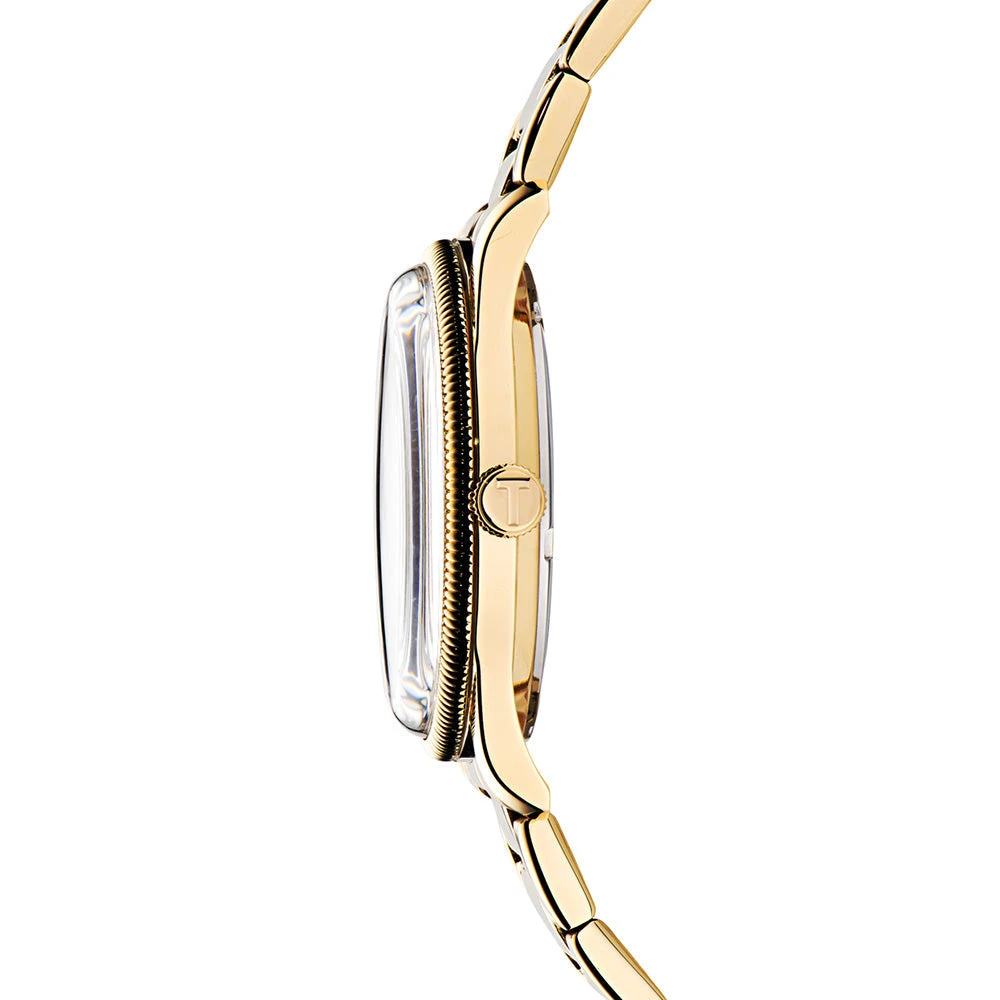 Add a touch of glamour to your ensemble with this stunning watch featuring a vibrant green dial and yellow gold stainless steel bracelet. The eye-catching design and luxurious details make it a standout accessory for any occasion.
