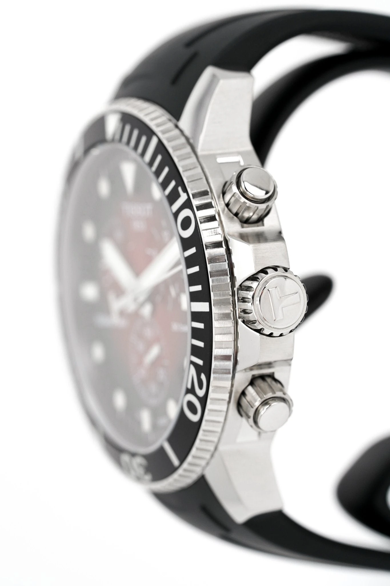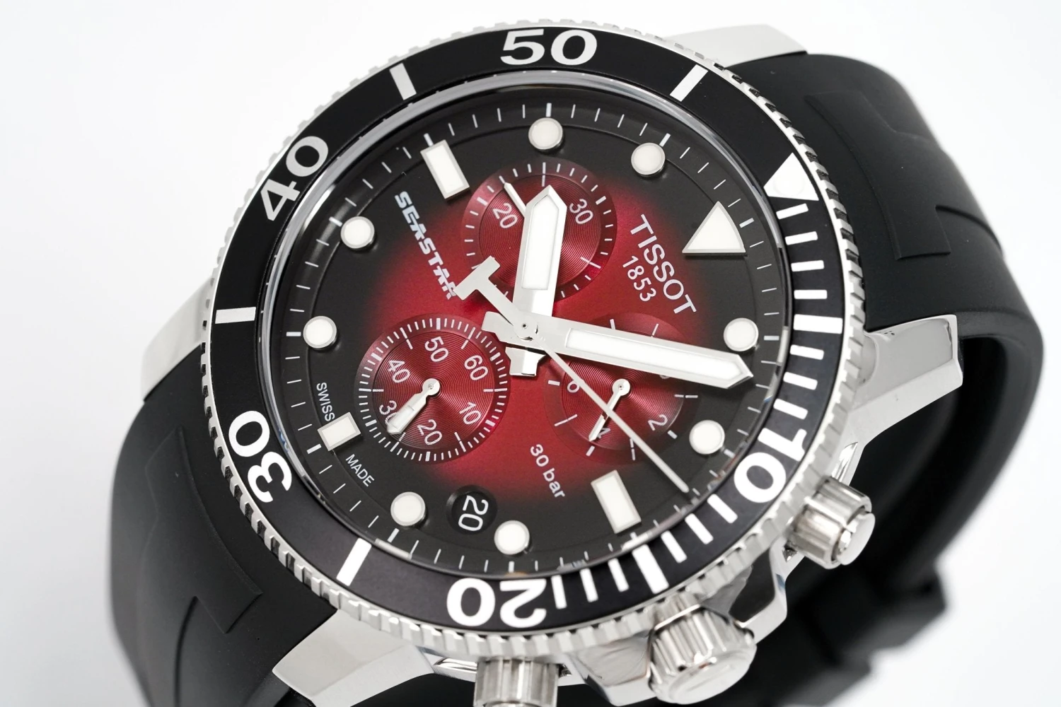 Red/Black Graded Dial with Stainless Steel Luminous Hands and Indexes – Small Seconds – Date Window Between 4 and 5 O’Clock – 1/10 Seconds, 60 Seconds and 30 Minutes Sub-Dials –Â ADD and SPLIT Functions.