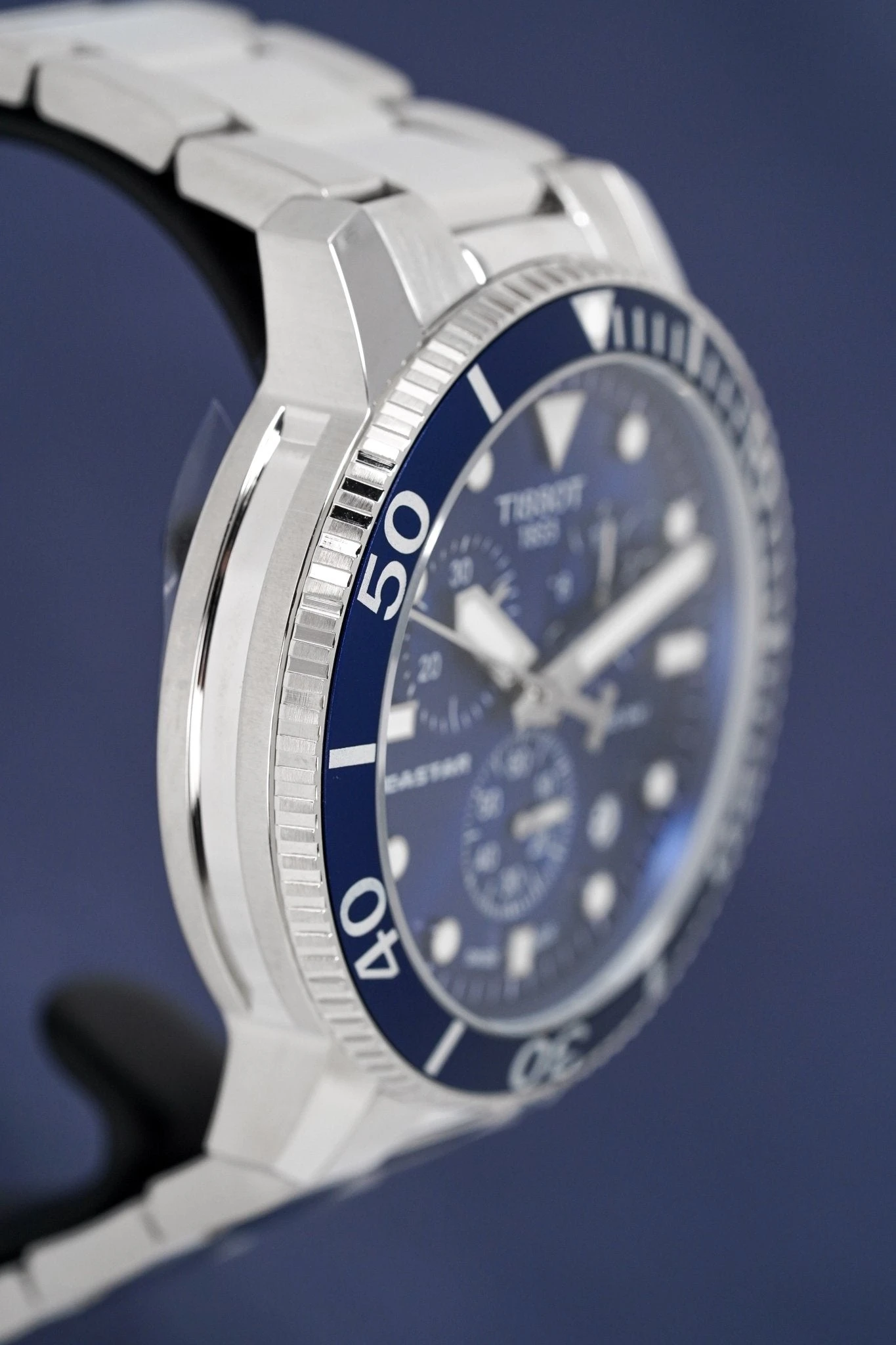 Blue Dial with Stainless Steel Luminous Hands and Indexes – Small Seconds – Date Window Between 4 and 5 O’Clock – 1/10 Seconds, 60 Seconds and 30 Minutes Sub-Dials –Â ADD and SPLIT Functions.