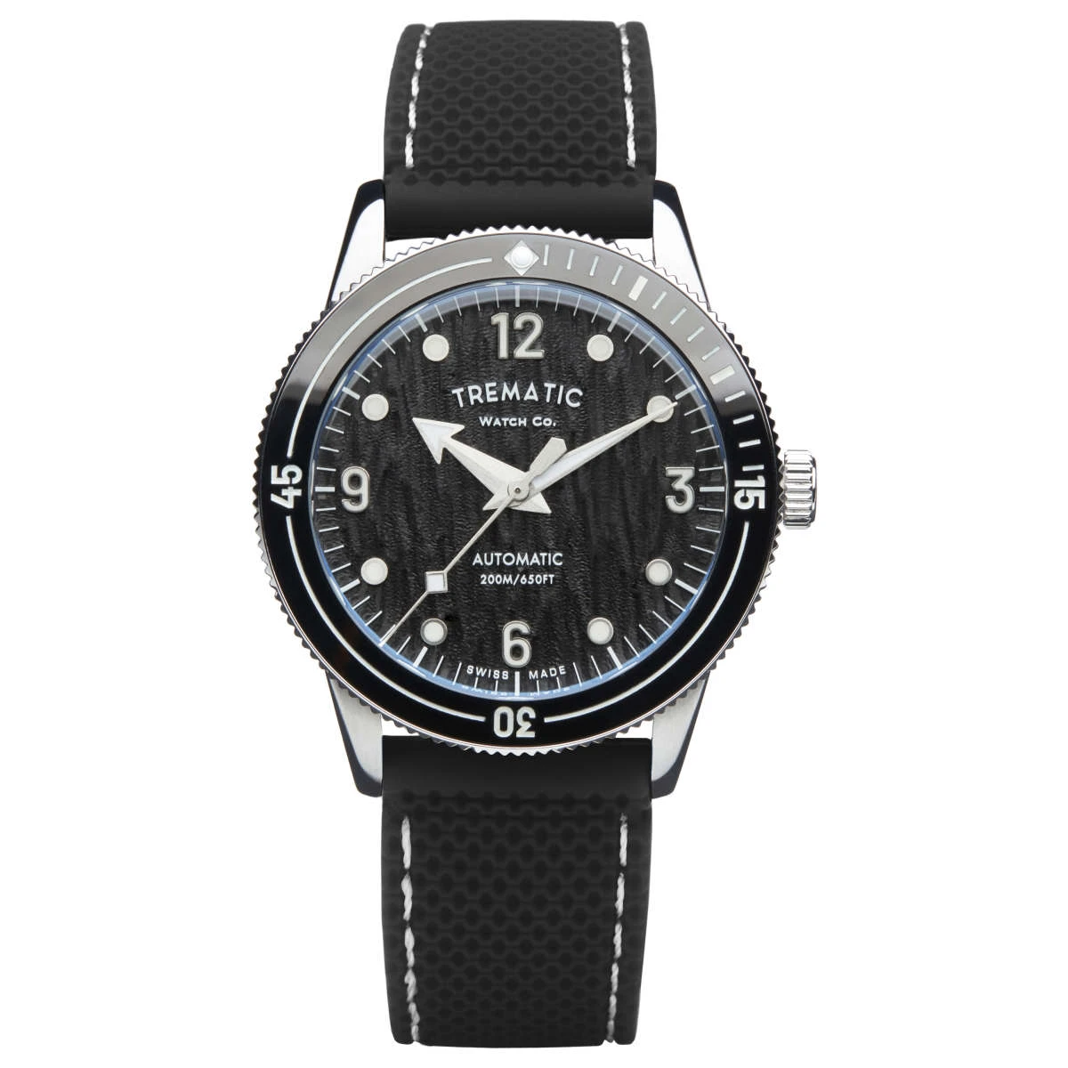 AC 14 dive watch, automatic movement Swiss Made Sellita SW 200-1 with charcoal black precision milled dial and tungsten bezel.