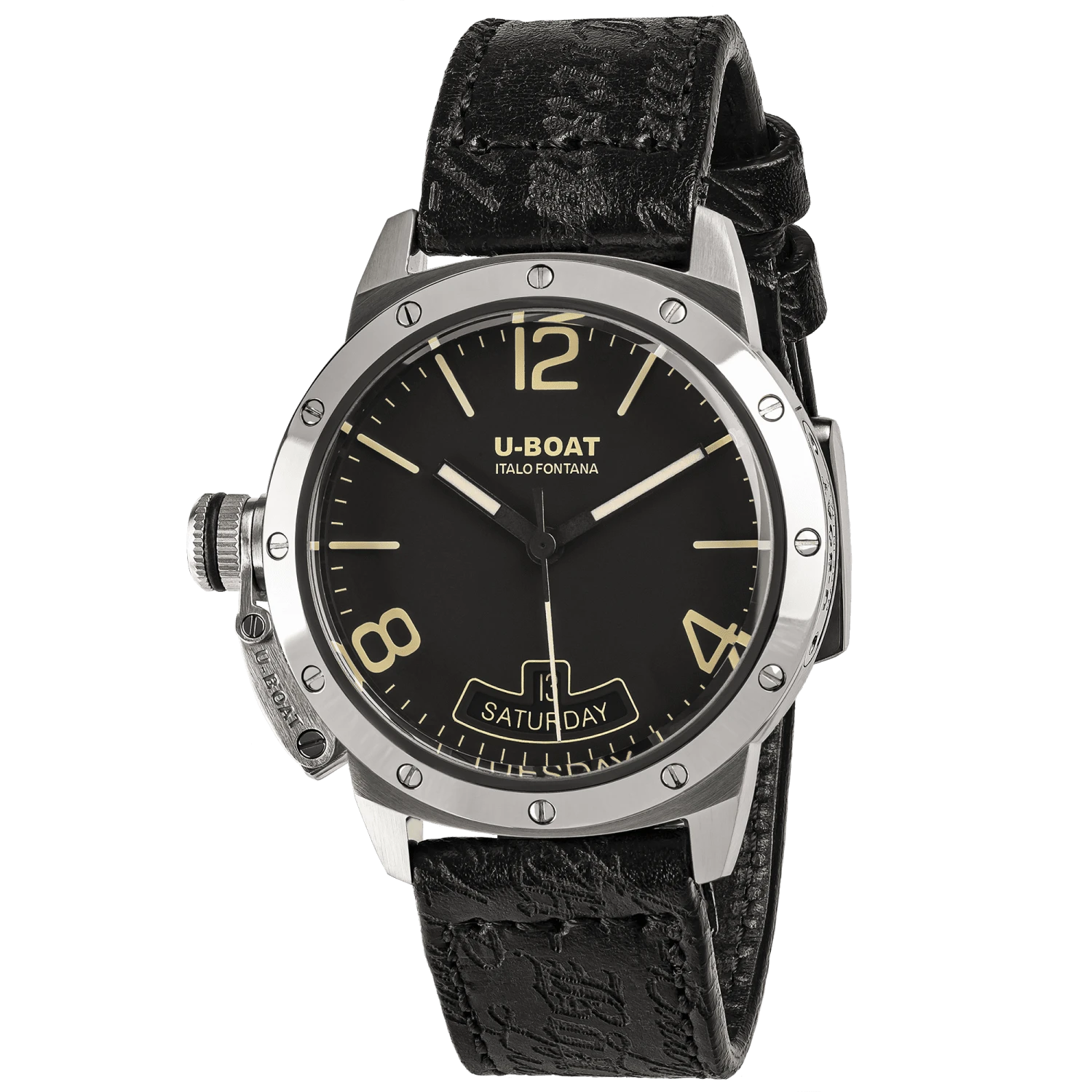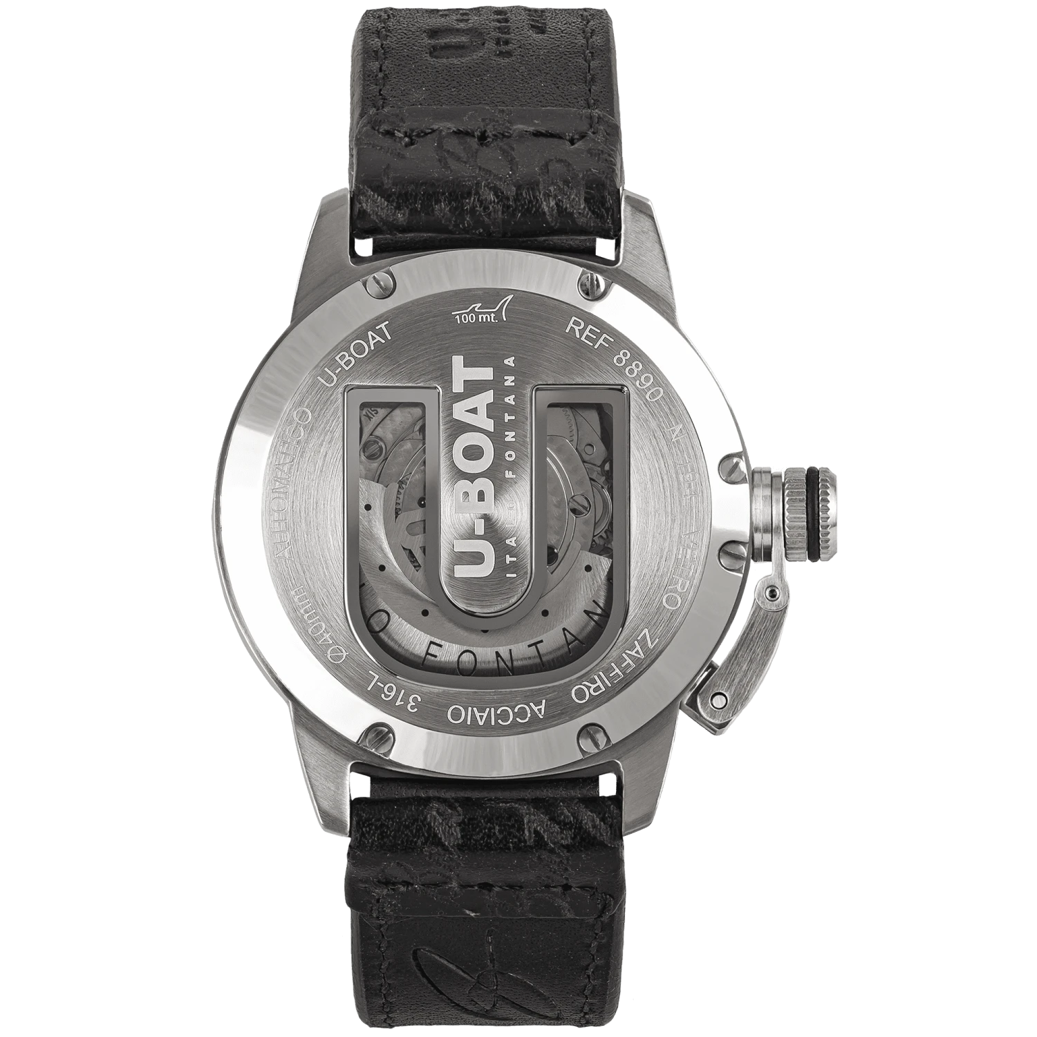 - Movement: Swiss automatic winding with U-BOAT technical specifications. Frequency: 28,800 vibrations/hour. Power reserve: 44 hours. 26 rubies. Custom skeletonized rotor.