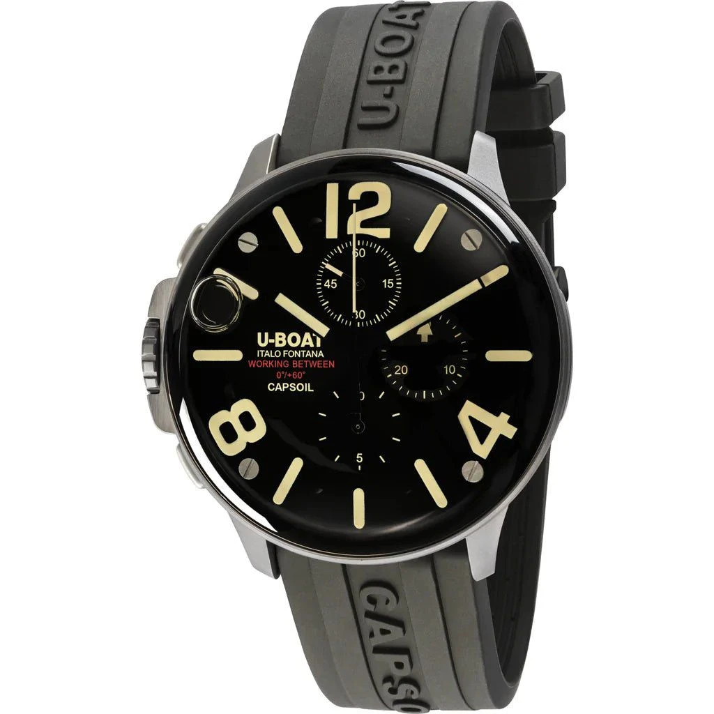 22mm x 20cm Black Vulcanised Rubber Strap with U-BOAT Logo – 316L Stainless Steel Buckle