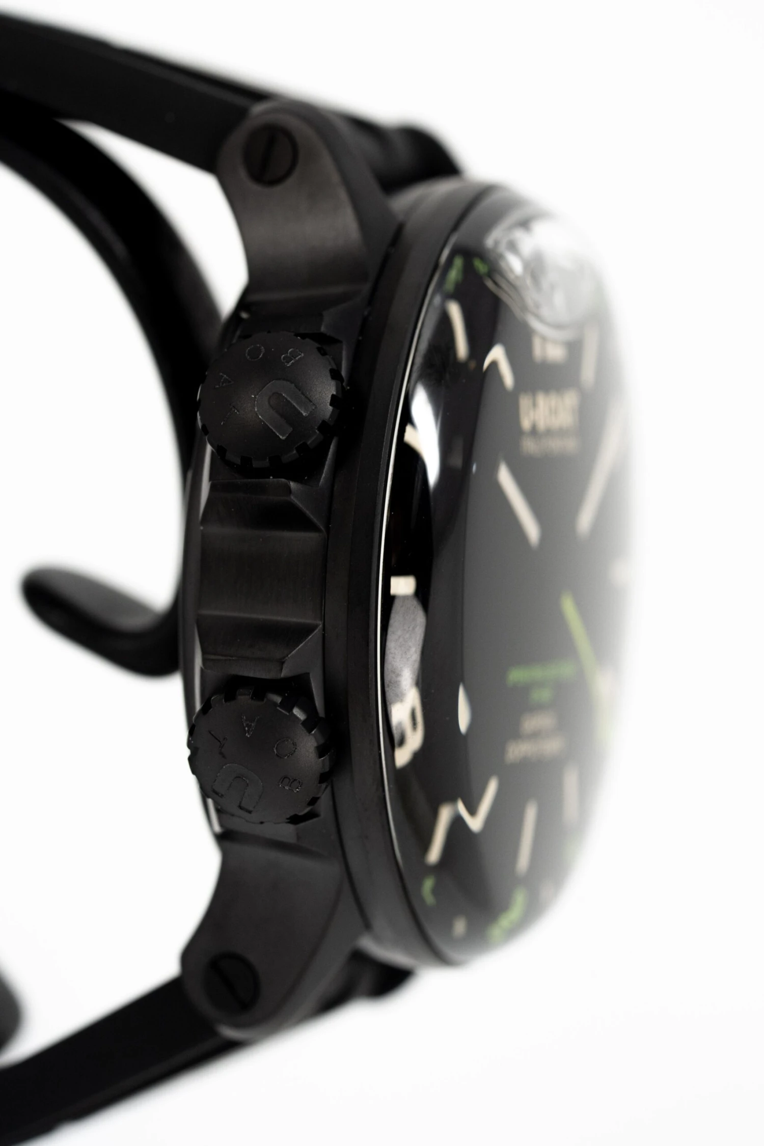 22mm x 20cm Black Vulcanised Rubber Strap with U-BOAT Logo – 316L Stainless Steel Buckle