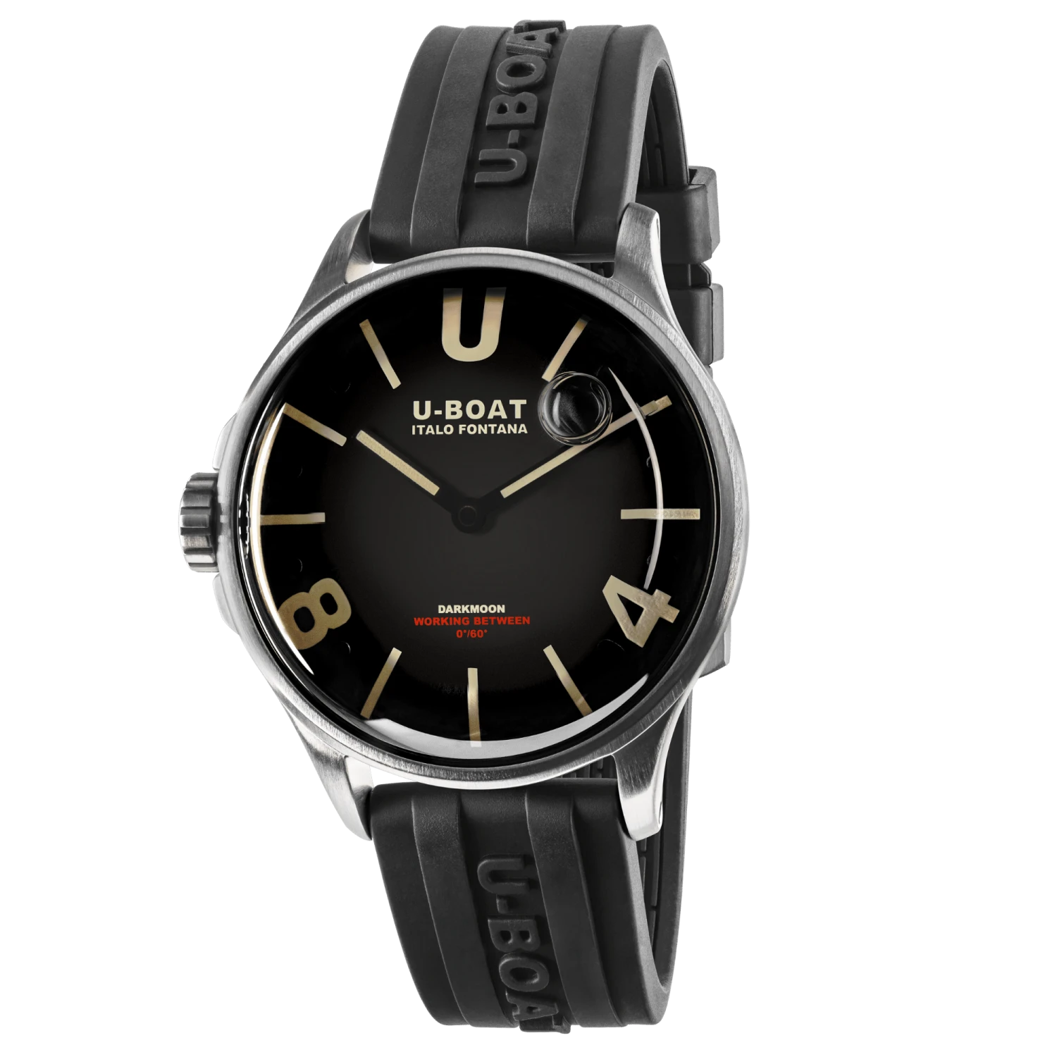 22mm x 20cm Black Vulcanised Rubber Strap with U-BOAT Logo – 316L Stainless Steel Buckle