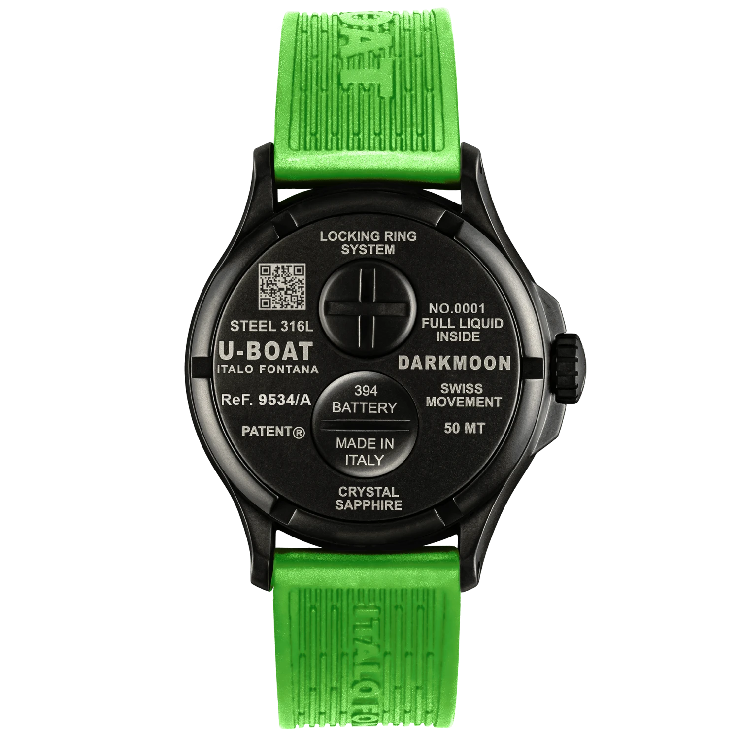 44mm AISI Black PVDÂ 316L Stainless Steel Case Completely Filled with a Special Oil that Emphasises and Improves Legibility on the Dial – High Quality Domed Sapphire Crystal Glass with Anti-Reflection Treatment – Innovative Locking System with Quick Battery Replacement –Â Distinguishing Crown on Left Side –Â Screwed In Black PVD 316L Stainless Steel Case Back.