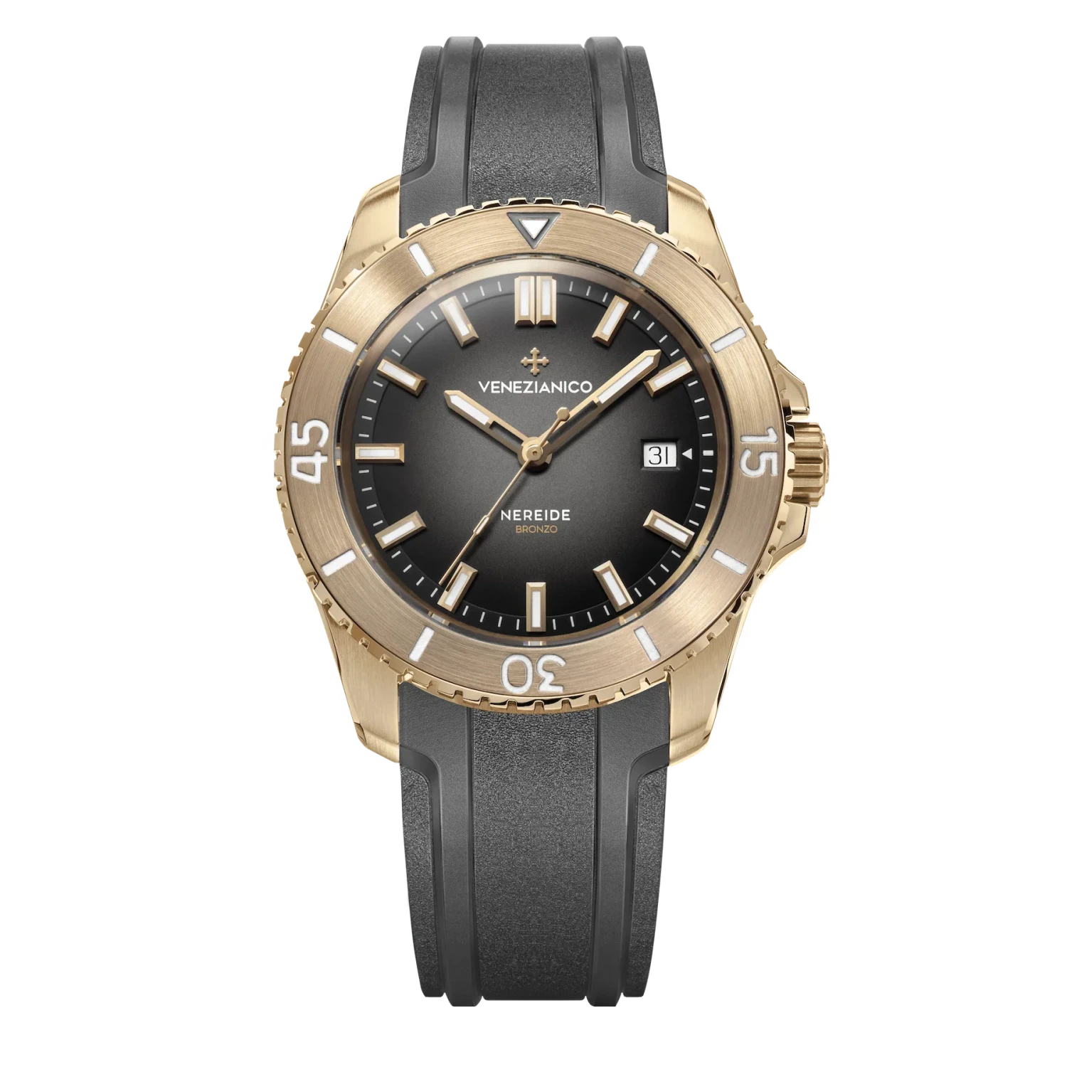 Inspired by the iconic Horses of St. Mark, the Nereide Bronzo embodies the timeless charm of Venetian craftsmanship. The bronze case evolves over time, developing a unique patina that tells a story of its own. Powered by the Swiss-made Automatic Cal. Sellita SW200-1 movement, this watch ensures precise and reliable performance. The sapphire crystal with anti-reflective coating provides exceptional clarity, while BGW9 Super-LumiNova® enhances visibility in low light. With a water resistance of 30ATM (300 meters) and a robust Italian-made rubber strap, the Nereide Bronzo is both elegant and versatile, perfect for any adventure.