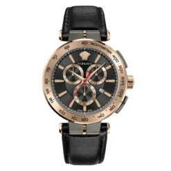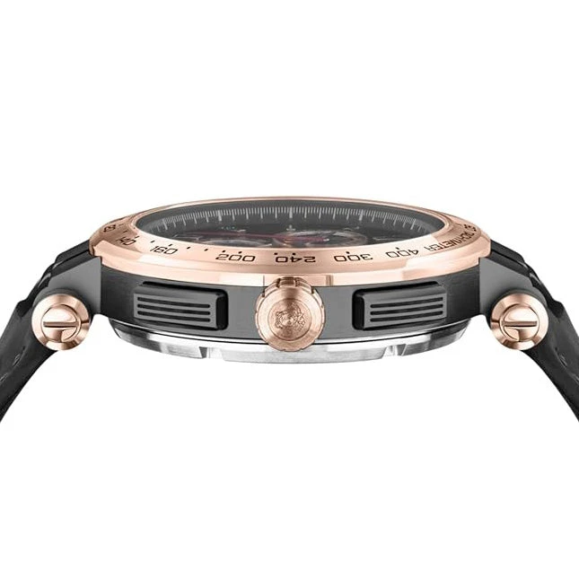 Exude elegance and precision with the Versace Aion Chronograph Men’s Black Watch VE6CA0323, a luxurious timepiece that blends timeless design with modern functionality. Featuring a bold 45mm stainless steel case in a stunning rose gold finish, this watch is the epitome of sophisticated style.