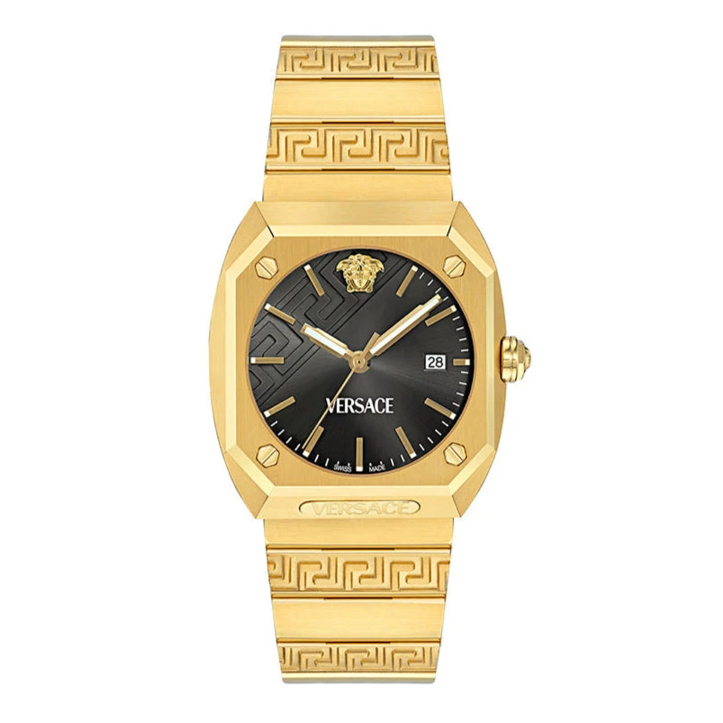Named by the brightest star in the constellation Scorpio, the Antares collection is the SS24 hero project. This timepiece features a very geometrical and bold case body, enriched with Versace logo on lug. The dial is essential but still representing brand’s icons: and 3D Greca, Medusa head at 12h and Versace logo at 6h. The most powerful reference of this collection is the one entirely made in Titanium, following the latest watch trends but never forgetting the Versace essence.