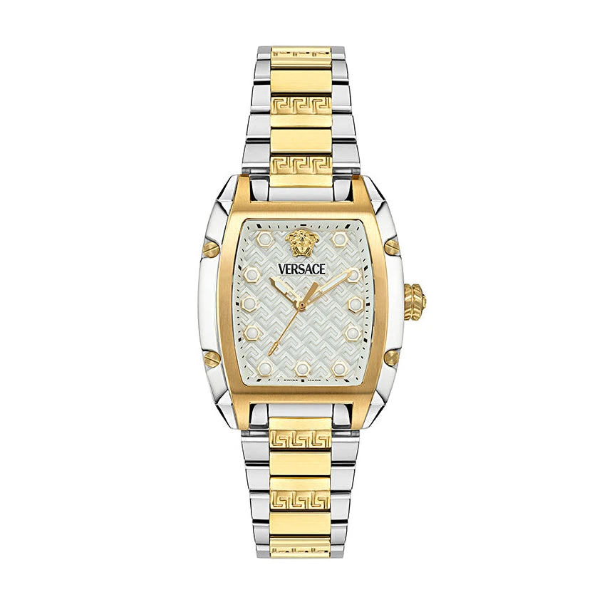 Following the latest trends and the success of Versace Dominus Gents, this collection embodies the Versace DNA in this more feminine tonneau case body. The watch hosts a 3 hands movement and a chic guilloche dial . To flag the black silicon strap version VE8K00324 where the indexes are enriched with 11 diamonds.