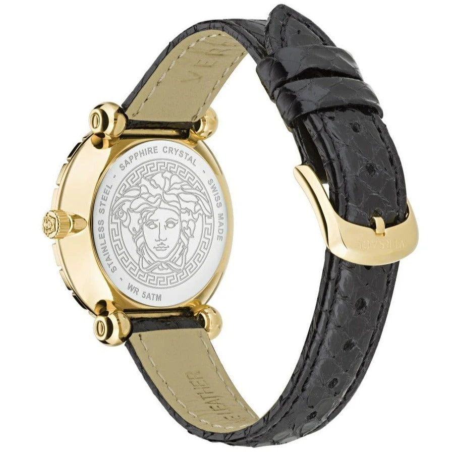 This new incident brings to mind the distinctive brand DNA and recognizable Greca. This watch has a distinctive Versace personality thanks to the 3D Medusa at 12 o’clock and the Greca on the top and inner rings. To mark the new bracelet links and the Elaphe leather for the strap version.