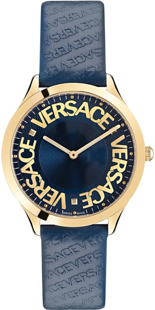 Dial: Blue Sunray Dial with Gold Applied Versace Halo Logo – Gold Plated Stainless Steel Luminous Hour and Minute Hands.