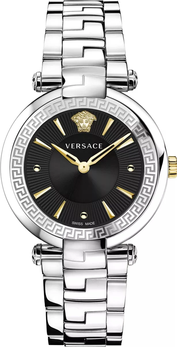 Dial: Black Sunray Dial – Gold Plated 316L Stainless Steel Skeleton Hour and Minute Hands – Versace Medusa Logo at 12 O’Clock – Hour Markers.