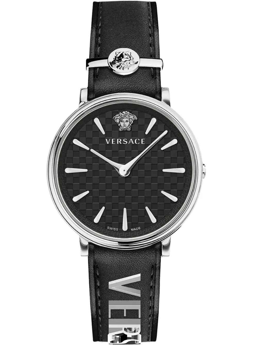 Dial: Black Check Textured Dial with Stainless Steel Markers and Hands – Medusa Head at 12 O’clock –Sapphire Crystal Glass.