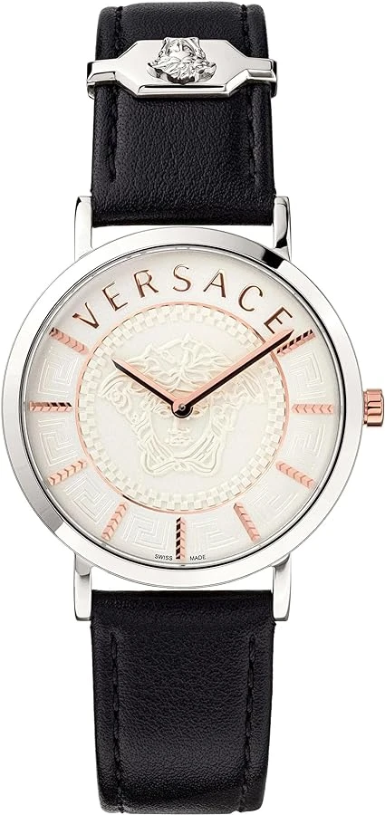 Case: 36mm x 7mm Polished 316L Stainless Steel Case – Solid Stainless Steel Caseback with Versace Engraving – Anti-Reflective Sapphire Crystal Glass – Push-Pull Crown.