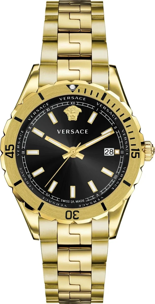 Case: 42mm x 11mm Gold Plated 316L Stainless Steel Case – Solid 316L Stainless Steel Caseback with Medusa Head Engraving – Anti-Reflective Sapphire Crystal Glass – Push-Pull Crown.