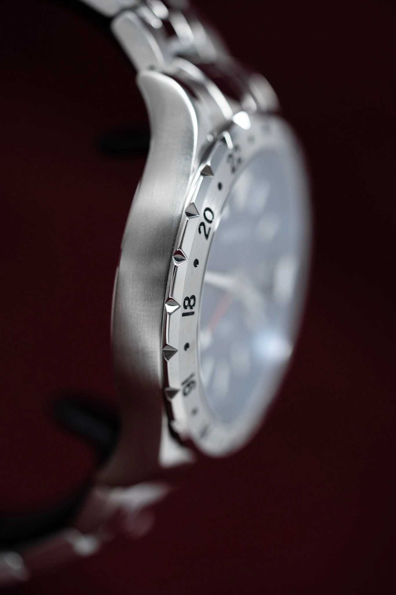 Dial: Blue Sunray Dial – Stainless Steel Applied Markers and Hands – Red GMT Hand – Date Window at 3 O’Clock with Cyclops – Versace Medusa Logo at 12 O’Clock
