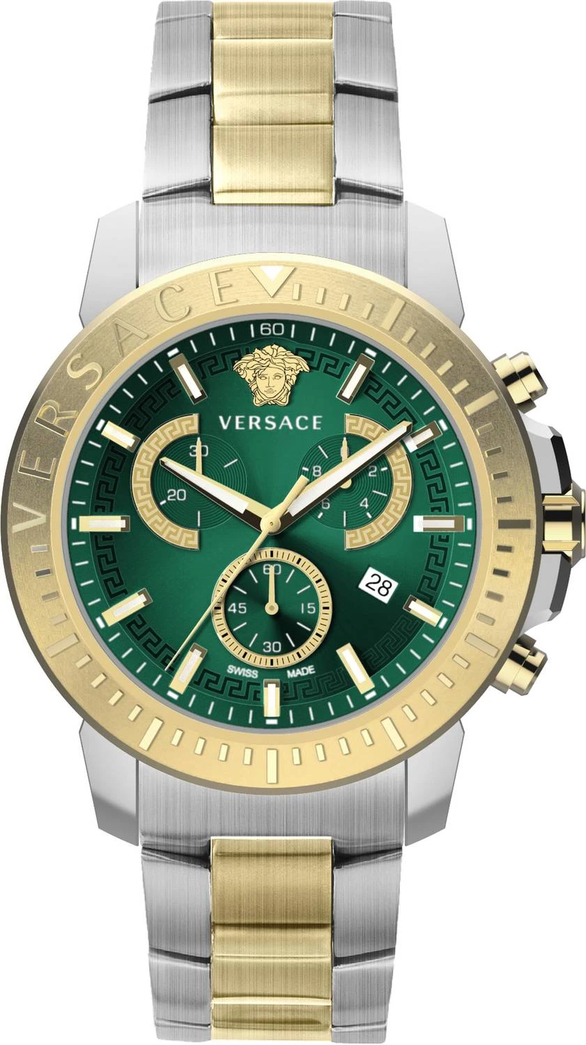 Case: 45mm x 13mm 316L Stainless Steel Case – Solid 316L Stainless Steel Caseback with Medusa Head Engraving – Anti-Reflective Sapphire Crystal Glass – Push-Pull Crown.