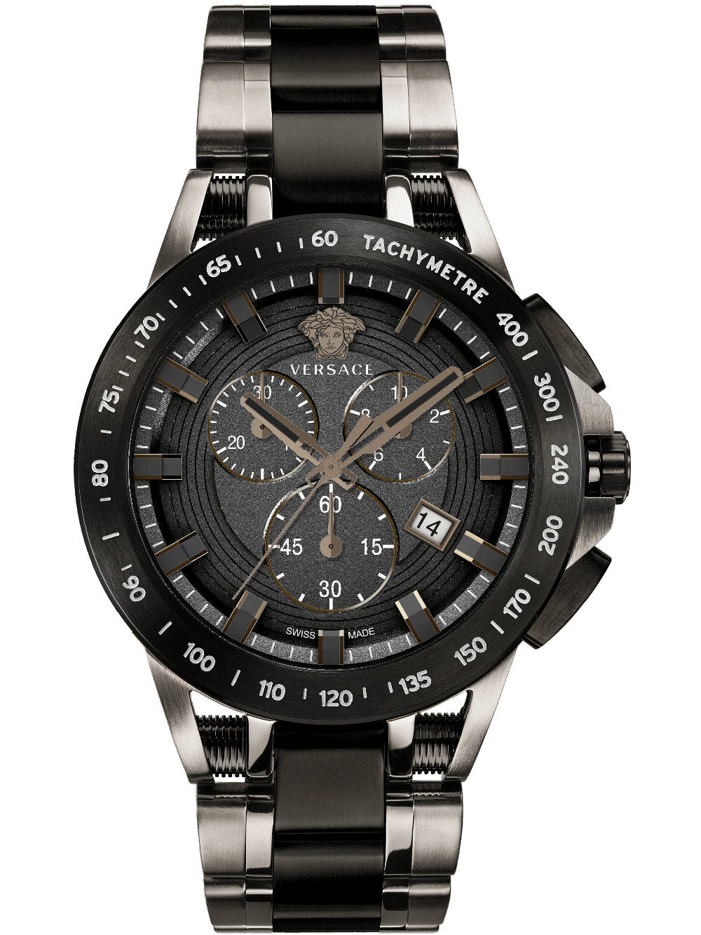 Case: 45mm x 13mm Gun Metal Plated 316L Stainless Steel Case with Pushers and Tachymeter Bezel – Sapphire Crystal Glass – Solid Caseback.