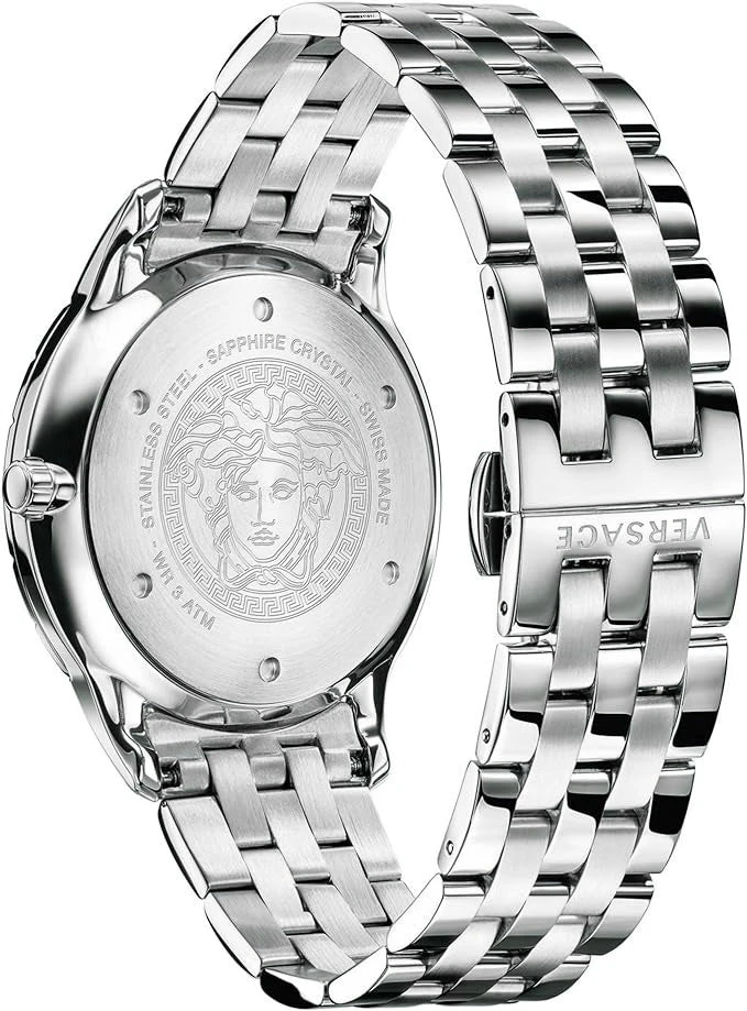Case: 43mm x 8mm Polished 316L Stainless Steel Case – Solid 316L Stainless Steel Caseback with Medusa Head Engraving – Anti-Reflective Sapphire Crystal Glass – Push-Pull Crown.