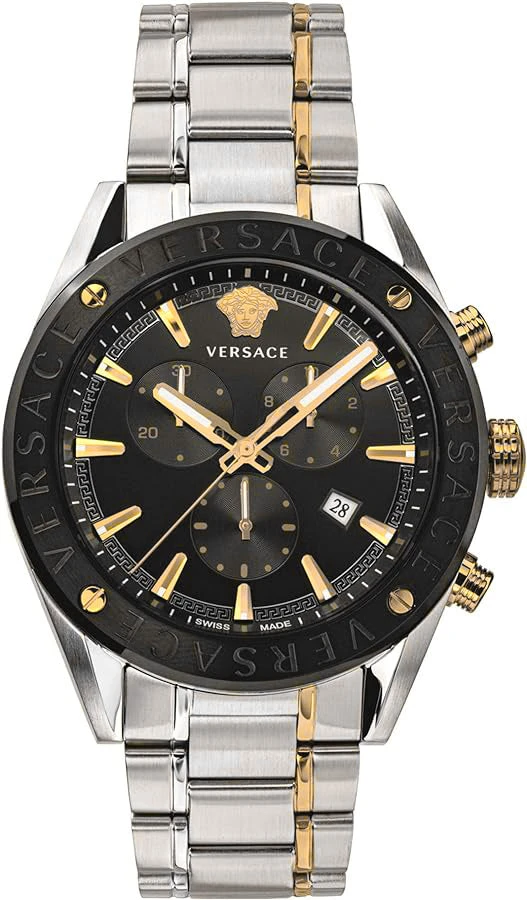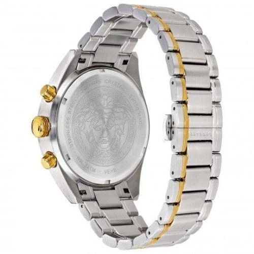 Case: 44mm x 9mm Polished/Brushed 316L Stainless Steel Case – Solid Stainless Steel Caseback with Versace Engraving – Anti-Reflective Sapphire Crystal Glass – Push-Pull Crown.