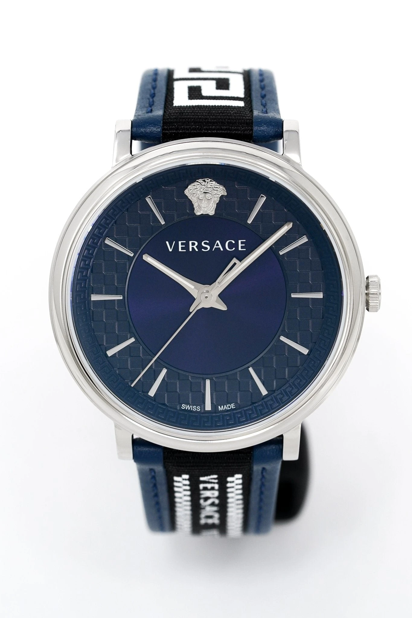 Dial:Â Blue Dial with Silver Applied Markers and Luminous Hands – Medusa Head at 12 O’Clock.