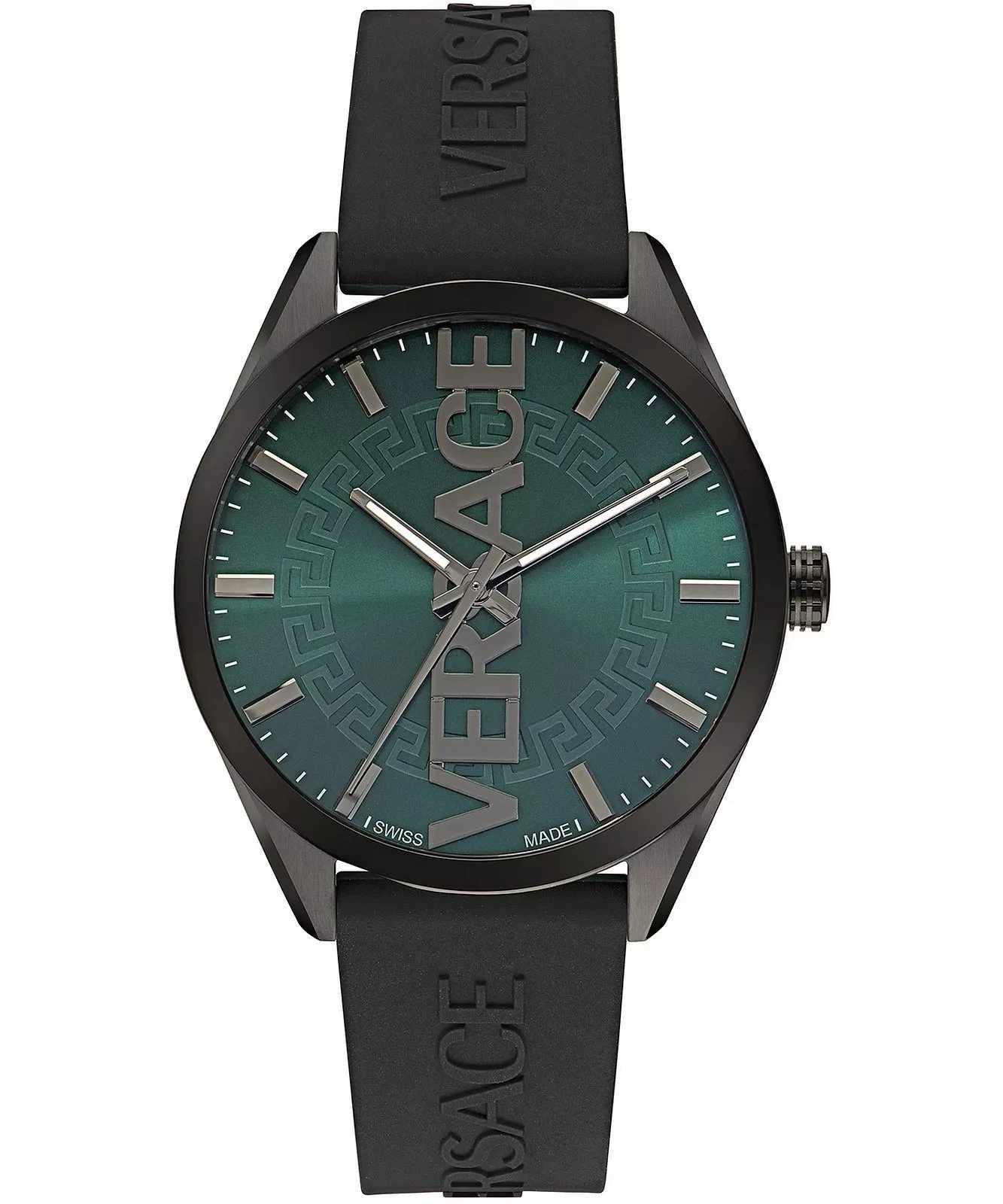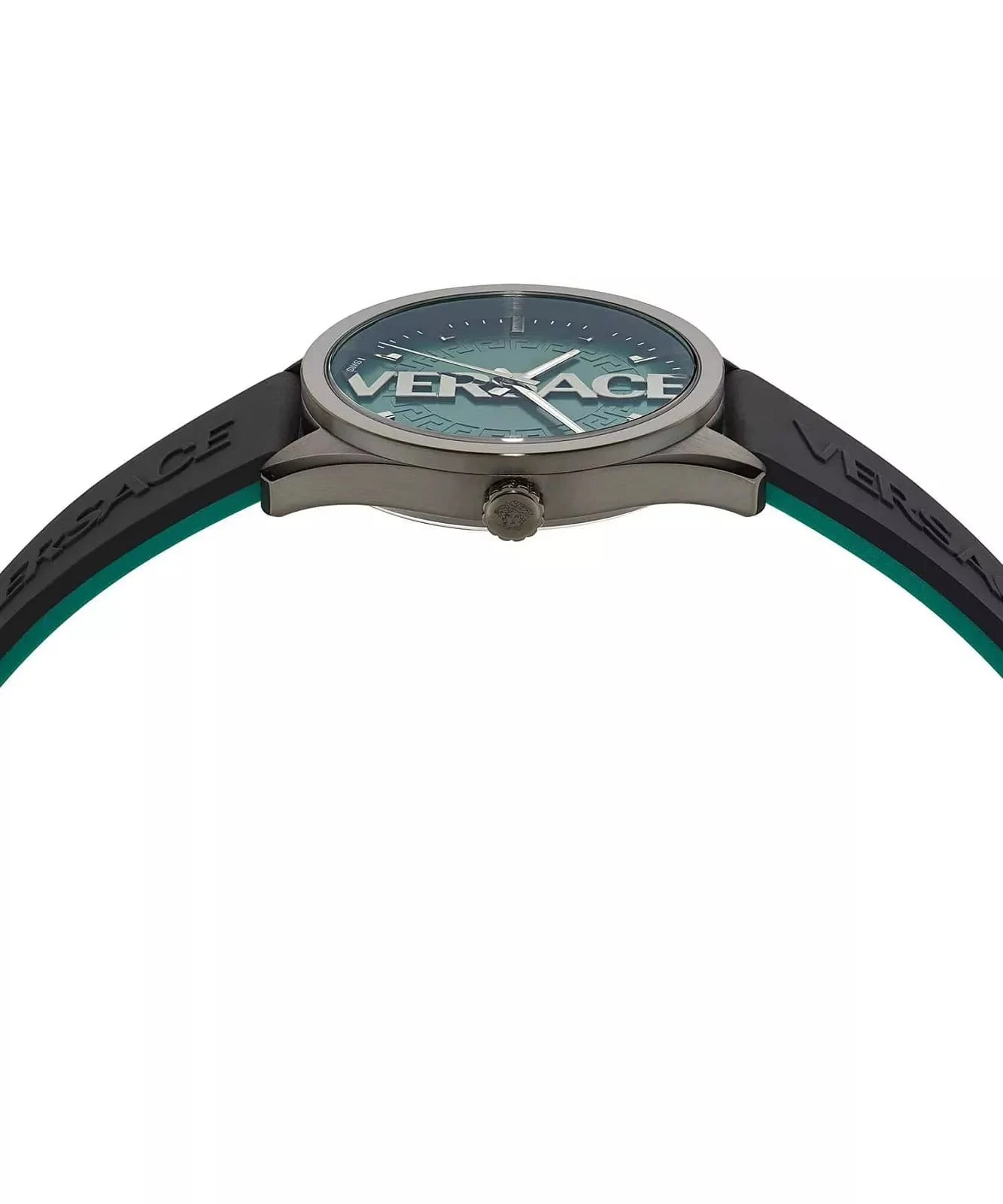 Dial: Green Dial with Greca Pattern – Grey Stainless Steel Markers and Hands – Vertical Versace Logo –Sapphire Crystal Glass.