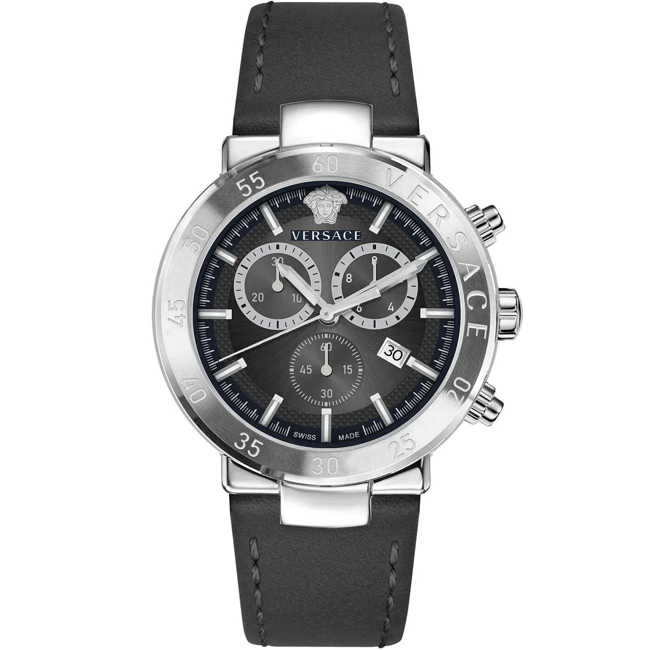 Discover the perfect blend of modern sophistication and functionality with the Versace Urban Mystique Men’s Chronograph Black Watch VEPY00120. This Swiss-made timepiece features a robust 44mm stainless steel case with a polished and matted finish, offering a sleek and contemporary look. Its fixed bezel and screwed stainless steel back ensure durability and style.